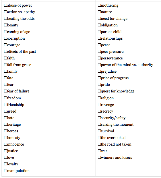 Then, in your ELA notebooks create a T-chart of possible thematic Topics. Include evidence to support your thinking.